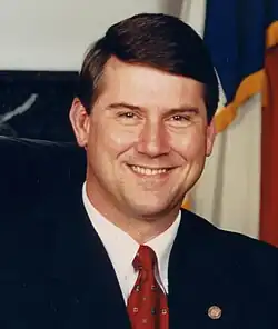 Despite this, the legislature granted the lieutenant governor automatic membership on several state boards and significant appointment responsibilities.[17] By 1982, North Carolina had one of the most powerful lieutenant governorships in the country.[5] By 1989, the lieutenant governor was responsible for 195 appointments to 87 state boards (106 of these were subject to legislative confirmation).[16] Despite this, the officials experienced mistrust from the Senate and faced several unsuccessful attempts to strip them of their appointive powers.[18][19] From 1985 to 1989, Democrat Robert B. Jordan served as lieutenant governor while Republican James G. Martin served as governor, making him the de facto leader of the North Carolina Democratic Party.[20] Upon Republican Jim Gardner's assumption of lieutenant gubernatorial office in 1989, Democrats in the Senate modified the body's rules, stripping the office of its powers to appoint committees in that house and assign bills to its committees.[21][22] During Gardner's tenure, the office's staff was further expanded.[23] In 1997 the General Assembly debated modifying the constitution to provide for the election of the lieutenant governor on a joint ticket with the governor or to have the office assume the responsibilities of the North Carolina Secretary of State, but these proposals did not move forward.[24] Another effort in 2015 to amend the constitution to provide for the office's joint ticket election with the governor failed.[25]