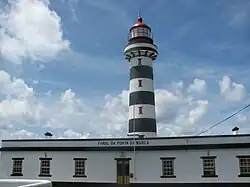 The Lighthouse of Ponta da Barca (Portuguese: Farol da Ponta da Barca) is a beacon/lighthouse located along the 24 metres (79 ft) cliffs of Ponta da Barca, near the hamlet of Bom Jesus, civil parish of Santa Cruz da Graciosa on the island of the same, the Portuguese archipelago of the Azores. Immediately near the lighthouse, is the emblematic baleia de pedra (whale rock), a curious geological basaltic rock that has resisted erosion, in the shape of a whale. The lighthouse includes a symmetrical single-floor building, and a 23-metre (75 ft) high cylindrical tower that extends its lamp to 71 metres (233 ft) above the ocean surface. It is considered a second-order lighthouse, which began operating on 1 February 1930.