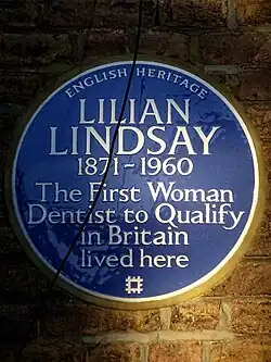 - ^ a b "LINDSAY, LILIAN (1871–1960)". English Heritage blue plaque for Lillian Lindsay. Retrieved 4 May 2014.