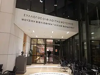 The Lilian Voudouri Music Library of Greece is a library located in Greece that specializes in music and was created under an initiative of the Friends of Music Society.[1][2] The library opened to the public in February 1997. The library’s collection is primarily made up of western European music, going back to ancient Greek music. The collection also includes material on world music, jazz, ancient Greek art, theater, dance, literature, philosophy, and fine art. The library's collection includes books, audio recordings, musical scores, microforms, journals, concert programs, CD-ROMs, and databases.