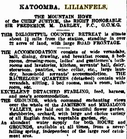 - ^ "A MOUNTAIN HOME". The Daily Telegraph. No. 10830. New South Wales, Australia. 7 February 1914. p. 15 – via National Library of Australia.