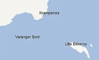Lille Ekkerøya (Norwegian), Pikku-Ekrea (Kven), or Ižžot (Northern Sami)[1] is an island in Vadsø Municipality in Finnmark county, Norway. The 0.34-square-kilometre (84-acre; 34-hectare) island lies in the Varangerfjorden, about 2 kilometres (1.2 mi) off the coast of the mainland Varanger Peninsula. It is located about 2 kilometres (1.2 mi) southeast of the village of Krampenes and about 5 kilometres (3.1 mi) northeast of the village of Ekkerøy. The town of Vadsø is located about 20 kilometres (12 mi) to the west of the island.
