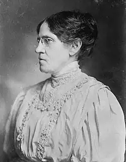 Working alongside Neal Dow, Lillian Stevens was recognized as a skilled organizer in 1884 when she helped to insert prohibition into the Maine State Constitution.[30] Under her national presidency, membership continued to swell, and one thousand temperance unions were organized in one year (1900).[31] She helped to raise the age for protection of girls to 16 and to add scientific temperance instruction to the schools.[30]