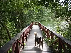 North and east of the lake are a petrol station and other operations considered as having a negative environmental impact. Until the mid-1980s, the lake received considerable amounts of spillway overflow which resulted in high levels of coliform bacteria. A waste water accident in 1997 caused considerable amounts of polluted water to leak into the lake, but since 2001 waste water only reaches the lake during sustained periods of rain. Low levels of oxygen causes levels of phosphorus to rise in the bottom of the lake during winters and during summers when the lake is stratified. Run-off water from surrounding roads reaches the lake through the ditch dug when the park was created. Most of the nitrogen and more than half of the phosphorus stems from settlements in the area, while allotment gardens, generally lacking sewers, contribute nutrients. Industrial and other operations contribute zinc and copper. The lake's sediments have high levels of copper and nickel, and deeper sediments contain very high levels of organic compounds such as PAHs and PCB.[3]