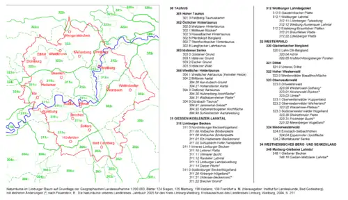 - Feuerstein, B.: Die Naturräume unseres Landkreises. Jahrbuch 2005 für den Kreis Limburg-Weilburg, Kreisausschuss des Landkreises Limburg-Weilburg, 2004, p. 251, ISBN 3-927006-41-6