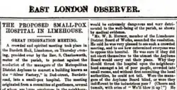 - "East London Smallpox Hospital". The Times. 15 January 1877.
