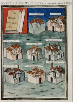 - for intra Africam (Tunisia, Algeria, western Libya) the Dux et praeses provinciae Mauritaniae et Caesariensis.