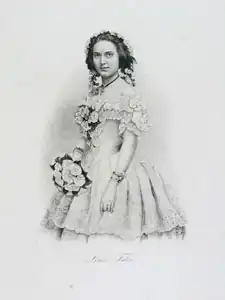 In 1860, she retired to private life.[2] She married the ophthalmologist and Privy Councillor of Public Health Dr Adolf Ernst Waldau (1822-1895), who had his practice and flat in the Königsmarcksches Palais at Mauerstraße 36. The marriage produced daughters Wilhelma and Lina. On the same floor as the Waldau family lived Gustav zu Putlitz with his family.[3]