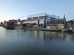 Lincoln City Centre is on the northern and southern banks of the River Witham and it runs directly from the east of the city into Brayford Pool in the west of the city. Most of the river forms a small waterside plaza which runs along Waterside North and South to the City Square before it passes under High Bridge and under Wigford Way before merging into Brayford Pool and continuing west as Foss Dyke. The Foss Dyke then becomes a canal walk between Lincoln and Saxilby via Burton Waters and Skellingthorpe.[36] Parks and gardens in and around the city centre include Temple Gardens, South Commons, West Common and Lincoln Arboretum.[37] Brayford Pool near the university offers a wide range of boating activities, coffee houses and bars as well as a cinema.[38] The city is also home to many nightclubs and bars. Most notable is the Engine Shed which hosts many events and is the largest events venue in the city centre.