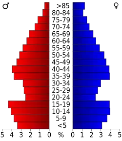 Age pyramid for Lincoln County, Oklahoma, based on census 2000 data.