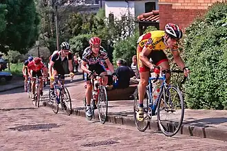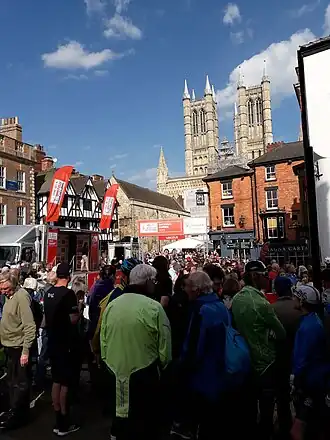 The Rapha Lincoln Grand Prix (formerly the Witham-Valley Grand Prix) is a road bicycle race that starts and finishes in Lincoln. The 2021 version was 166 km long.[1] The race is characterised by its ascent of Michaelgate, an iconic cobbled climb in the centre of Lincoln with a maximum gradient of 20%.[2] The Lincoln GP has run since the summer of 1956,[3] making it the oldest annual bike in the UK that still runs today.