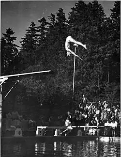 In 1941, Seattle pioneer descendant Kenneth Colman donated Lincoln Park's Colman Pool to the city of Seattle as a memorial to his father Laurence. The saltwater Colman Pool was built over the site of the tide-fed swimming pool that the city had constructed in 1925.[11] The lobby of the pool's building has a mural by Ernest Norling.[12] The pool was integrated in 1944 after demonstrations by African American students from the University of Washington.[13]