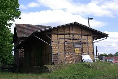 Lindenberg (Mark) station is a railway station in the Lindenberg (Mark) district in the municipality of Tauche, located in the Oder-Spree district in Brandenburg, Germany.