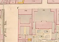 The property was home to 23 residents in three households at the 1840 census. Adolph Christian Fibiger resided in the building with his wife Caroline Hedevig Klingberg, their four-year-old twin sons Adolph Wilhelm Fibiger and Peter Christian Fibiger, one male servant and two maids.[2] Five sercants for grand Minister Baron Schoultz von Aschenraden were also residing together in the building.[3] Søren Petersen, a carriage maker, resided in the rear wing with his wife Johanne Søeholm, their two-year-old daughter Ane Hansine Petersen, one maid, three carriage makers (employees) and four apprentices.[4]
