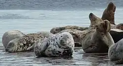 Grey seals are commonly found in the waters and on the rocks around the isle of Lindisfarne, and common seals are also occasionally seen.[6]