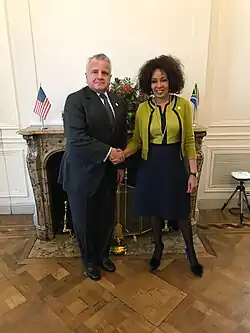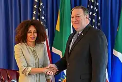 In the aftermath of the Nasrec conference, in February 2018, Ramaphosa replaced Zuma as national president. He appointed Sisulu to replace Maite Nkoana-Mashabane as Minister of International Relations and Cooperation in his new cabinet.[86] Soon after her appointment, she commissioned a comprehensive review of South African foreign policy, which was led by Aziz Pahad.[87] The Mail & Guardian commended her for "bringing a new energy" to the Department of International Relations and for being "an assured and charming representative of South Africa".[88] In November 2018, human rights advocates criticised South Africa's decision to abstain from a Third Committee resolution which condemned the Rohingya genocide in Myanmar,[89] but, soon afterwards, Sisulu announced that her department would reverse its position as part of a broader policy of taking a stronger stance on human rights issues.[90] Indeed, South Africa supported the same resolution when it appeared before the United Nations General Assembly.[91]