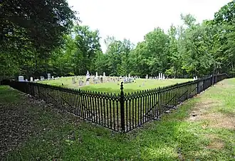 Lindsay Cemetery, located just outside the town of Due West, South Carolina, was established in 1820. Over 100 graves with inscriptions are inside the cast-iron fence that marks the perimeter of the cemetery. The earliest grave is from 1820, many are from 1820 to 1892, and the most recent is from 1927.[2]