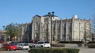 The building, constructed with grey limestone, was completed in 1853.[6] It was designed by Prussian-born architect Adolphus Heiman in the Gothic Revival architectural style.[6] It was built as the main hall for the University of Nashville while the university was closed from 1850 to 1855 due to a cholera epidemic.[6] It was named Lindsley Hall in honor of Dr John Berrien Lindsley, who served as the Chancellor of the University of Nashville from 1855 to its demise in 1873.[6][7] During the American Civil War, it was turned into a hospital for the Union Army in 1862.[6]