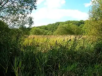 The loch in 1846 was well stocked with pike, perch, and eels, and was frequented by wild-duck, teal, widgeon, and other aquatic fowl.[9] An extensive woodland extends towards Lindston Farm and large areas of reeds (Phragmites species) are present. The loch site recorded as a wildlife site within South Ayrshire. The OS maps of the 1870s show a plantation beneath Lindston Farm and extensive areas of willow scrub have developed.