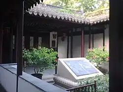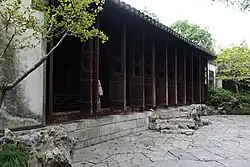 A winding roofed corridor which connects the entry hall, residence, and Old Intertwined Trees Court. It is marked by a tablet inscribed by Suzhou Magistrate Wu Yun reading, "Lingering garden".[2] |