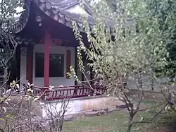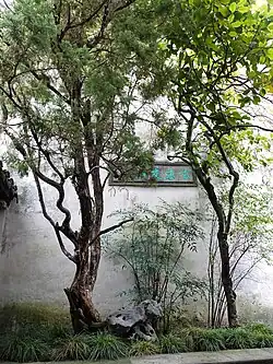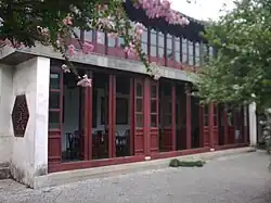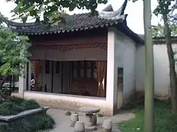 A complex and unique structure composed of a courtyard, open 3 bay hall, and covered corridor which functions as a single space. The courtyard is planted with two trees symbolizing jade (Magnolia soulangia) and gold (Osmanthus fragrans), a sign of prosperity. The entry to this space is marked by a tablet inscribed by Deputy Prime Minister Zhu Boqi which read, "Paradise on Earth".[2] |