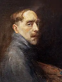 His father, Riccardo (born 1849), was a lawyer, poet, comedic dramatist, and politician,[2] who was Mayor of Venice from 1890 to 1895. He intended his son to become a lawyer and legislator.[3] Lino's brother, Luigi Selvatico (1873–1938), was also a painter.[4] Luigi was nicknamed il gobbo Selvatico due to his physical ailment.[5] Lino was a pupil of Cesare Laurenti, and was also influenced by his friend Ettore Tito. He also was known for art criticism. He exhibited two portraits at the third Venice Biennale in 1899. In 1926, the Biennale had a posthumous exhibit of 45 of his works, and in 1935, sixteen of his works. His works are displayed in the Moderna Art Galleries of Milan, Rome, Trieste, Udine, and Venice.[6] He completed portraits of Countess Annina Morosini (1908, Venice, Galleria d'arte moderna) and the actress Emma Gramatica (1911, Piacenza, Galleria d'arte moderna Ricci-Oddi).[7]