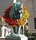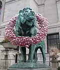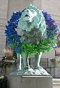 The sculptures are, nowadays, decorated in the winter holiday season with wreaths and bows in an annual "wreathing of the lions" ceremony.[3] This tradition was begun in 1991 and has been done nearly every year since.[24] The wreathing ceremony is traditionally held the day following the United States Thanksgiving holiday observance.[25]