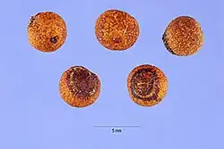 The plant is difficult to reproduce from seed due to several factors.[8] The fruit's pulp contains phenolic compounds that inhibit germination, and thus need to be removed to promote germination. In addition, seeds have a morphological dormancy because the embryo is not fully developed when the fruit ripens; a period of warm stratification is required to complete maturation. Lastly, the seeds do not store well. Cleaned seeds can be sown outdoors after the fruit ripens in early fall, recognizing that germination will be slow the following spring. Rapid germination can be promoted by warm, moist stratification of cleaned seed under dark conditions for 8 weeks at 77 degrees F (25 degrees C) for optimum germination.[9] Stratified seeds can be started indoors or in a heated greenhouse during the dormant season or they may be sown outdoors after the threat of frost has passed.