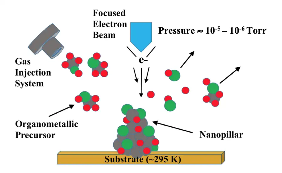- ^ a b Spencer, Julie A.; Rosenberg, Samantha G.; Barclay, Michael; Wu, Yung-Chien; McElwee-White, Lisa; Fairbrother, D. Howard (2014-12-01). "Understanding the electron-stimulated surface reactions of organometallic complexes to enable design of precursors for electron beam-induced deposition". Applied Physics A. 117 (4): 1631–1644. Bibcode:2014ApPhA.117.1631S. doi:10.1007/s00339-014-8570-5. ISSN 0947-8396. S2CID 53503634.