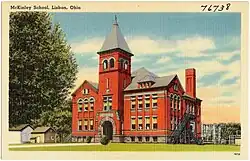 Initially known for its iron and whiskey production, New Lisbon grew into a diverse economic hub during the Industrial Revolution and became one of the largest towns along the Sandy and Beaver Canal.[9] During this period, it was home to the county's first bank, the Columbiana Bank of New Lisbon; its first insurance company, and Ohio's first newspaper, The Ohio Patriot, founded by Alsatian immigrant William D. Lepper.[10]