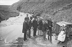 The spa official opened in 1845, but the town was visited before by people partaking of the waters. Even by the 1880s, however, the facilities were quite primitive. The wells were privately owned by the Guthrie family and were later developed and baths built by the new owner, a Dr. Westropp, who lived in a house overlooking the spa.[6]: 10–11