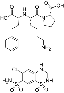 ![]() Lisinopril (top) and hydrochlorothiazide (bottom) | |