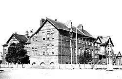 The Magellan Street site has been used for educational purposes since 1882. It was originally a paddock when the Lismore Public School, established in 1867, moved there that year. The children were housed in school tents until in August 1885 they moved into a new brick building with stone foundations. From 1890 the school offered primary and secondary education, becoming the Lismore Superior School. In 1902, when the northern end of the 1885 building became unsafe, a three-storey brick building, with a covered play area on the ground floor, was built and occupied by the Girls' Department in August 1903.[8]