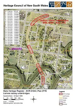 - ^ a b "Lismore railway underbridges". New South Wales State Heritage Register. Department of Planning & Environment. H01044. Retrieved 2 June 2018.