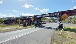 Lismore railway underbridges is a heritage-listed group of railway-associated structures in Lismore, New South Wales, Australia erected for the 1894 creation of that section of the Murwillumbah railway line. This item (as no. SHR 1044) was added to the New South Wales State Heritage Register on 2 April 1999.[1] It comprises the steel frame Leycester Creek railway bridge that carries the railway over Leycester Creek, plus associated timber (trestle) structures that cross Union Street in South Lismore, and Terania Street and Alexander Parade in North Lismore. As at October 2023, the Leycester Creek railway bridge was closed to the public for safety reasons while the Terania Street crossing, normally open to vehicular traffic, was temporarily closed to allow maintenance work to be carried out.[2]