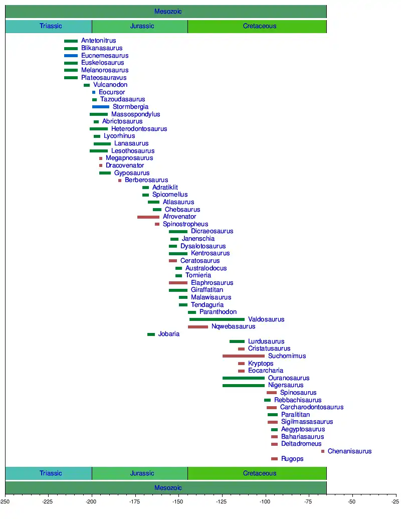 - This list is a complement to Category:Mesozoic dinosaurs of Africa.