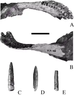 - ^ Sciscio, Lara; Knoll, Fabien; Bordy, Emese M.; Kock, Michiel O. de; Redelstorff, Ragna (2017-03-01). "Digital reconstruction of the mandible of an adult Lesothosaurus diagnosticus with insight into the tooth replacement process and diet". PeerJ. 5: e3054. doi:10.7717/peerj.3054. ISSN 2167-8359. PMC 5335715. PMID 28265518.
