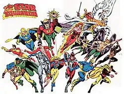 Members of DC Comics' All-Star Squadron, a superhero team made up of virtually every DC-owned character from the Golden Age of Comic Books and several newly retconned into that time period.