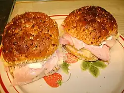 This is a list of American sandwiches. This list contains entries of sandwiches that were created in, or commonly eaten in, the United States. A sandwich is a food item consisting of one or more types of food placed on or between slices of bread, or more generally any dish wherein two or more pieces of bread serve as a container or wrapper for some other food.[1][2][3] The sandwich was originally a portable food item or finger food which began its popularity primarily in the Western World, but is now found in various versions in numerous countries worldwide.