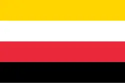Flag of South Peru (in Tarapacá, Arica & Parinacota) | A vertical field of red color on the left (with a sun and four stars) and two horizontal fields on the right of green (above) and white (below). | |