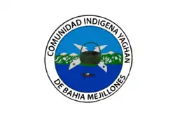 2012–present | Flag of Alacaluf people | Two blue and green triangles divided by a white sash. In the blue triangle, a brown 8-point star. In the green triangle, a human figure made with brown circles. |