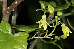 The Cucurbitales are an order of flowering plants, included in the rosid group of dicotyledons with a cosmopolitan distribution, particularly diverse in the tropics. The order includes shrubs and trees, together with many herbs and climbers. One major characteristic of the Cucurbitales is the presence of unisexual flowers, mostly pentacyclic, with thick pointed petals (whenever present).[1] The pollination is usually performed by insects, but wind pollination is also present (in Coriariaceae and Datiscaceae).