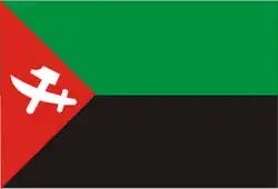 | 1960-1994 | Flag of The National Union for Independence | A horizontal bicolour of green and black, with a red isosceles triangle at the hoist bearing a sword and a hammer in its center. | |