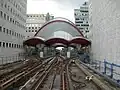 - Thames Wharf, located south of Canning Town, was safeguarded during the construction of the Beckton extension. Given construction of flying junctions for access to the Stratford International and Woolwich Arsenal branches of the DLR, construction of this station is no longer possible.[42] A new safeguarded site for a Thames Wharf station was constructed as part of the London City Airport extension.[36]