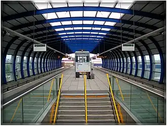 - ^ a b c d BBC News (6 December 2005). "DLR extension to airport is open". BBC News. Retrieved 28 June 2011.