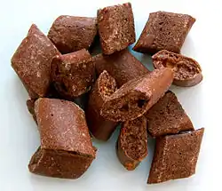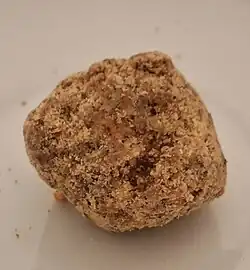 A pastry made from marzipan with almond, powdered sugar, rosewater, flour and egg. It is a traditional cookie usually baked for Christmas Day and is widely available in chocolate shops around Frankfurt.[4] |