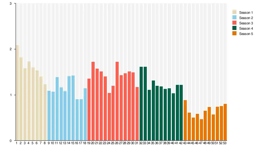 | 1 | 2.08 | 1.82 | 1.58 | 1.73 | 1.60 | 1.53 | 1.40 | 1.23 | – | |||||