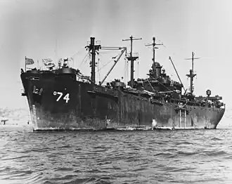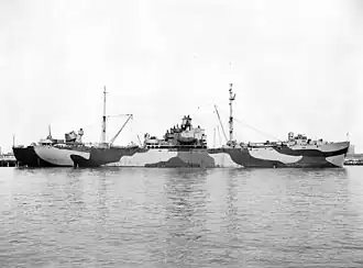 Cebu was built by Bethlehem Fairfield Shipyards. Her keel was laid on 21 September 1943. She was launched as Francis P. Duffey on 18 October and delivered to the United States Navy as Cebu on 27 October. A repair ship, she was laid up in Suisun Bay in June 1947. She was scrapped at Portland, Oregon in October 1973.[2][43]