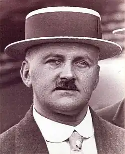 Ernest Mangnall was the first man to bring any major silverware to the club, winning the club's first ever Football League title in 1908. This was followed by the inaugural FA Charity Shield and the club's first FA Cup the following season, and then another league title and Charity Shield in 1911. Despite this success, though, he left the club a year later to join local rivals Manchester City. Coincidentally, Mangnall's last match in charge of United was the Old Trafford derby of 7 September 1912.[1] John Bentley took over as club secretary, but was replaced two years later by Jack Robson, who became the club's first full-time manager. He remained in the post for seven years, but resigned in December 1921 after succumbing to a bout of pneumonia.[2]
