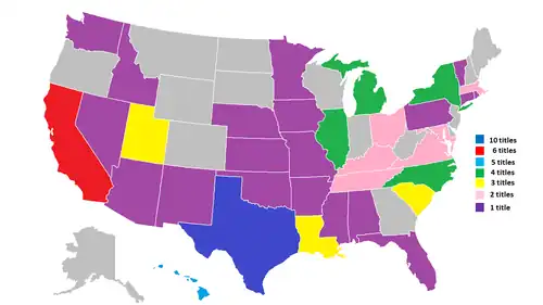 - ^ Map includes titleholders who were dethroned or resigned and runners-up who assumed the title after the original winner was dethroned or resigned